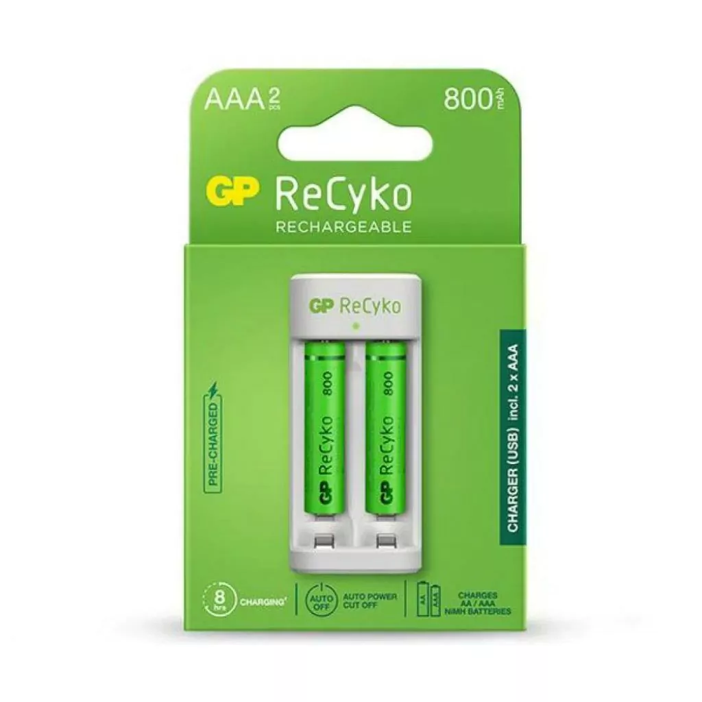 GP Carregador USB c/2 Pilhas AA 800MAH NI-MH Recyko