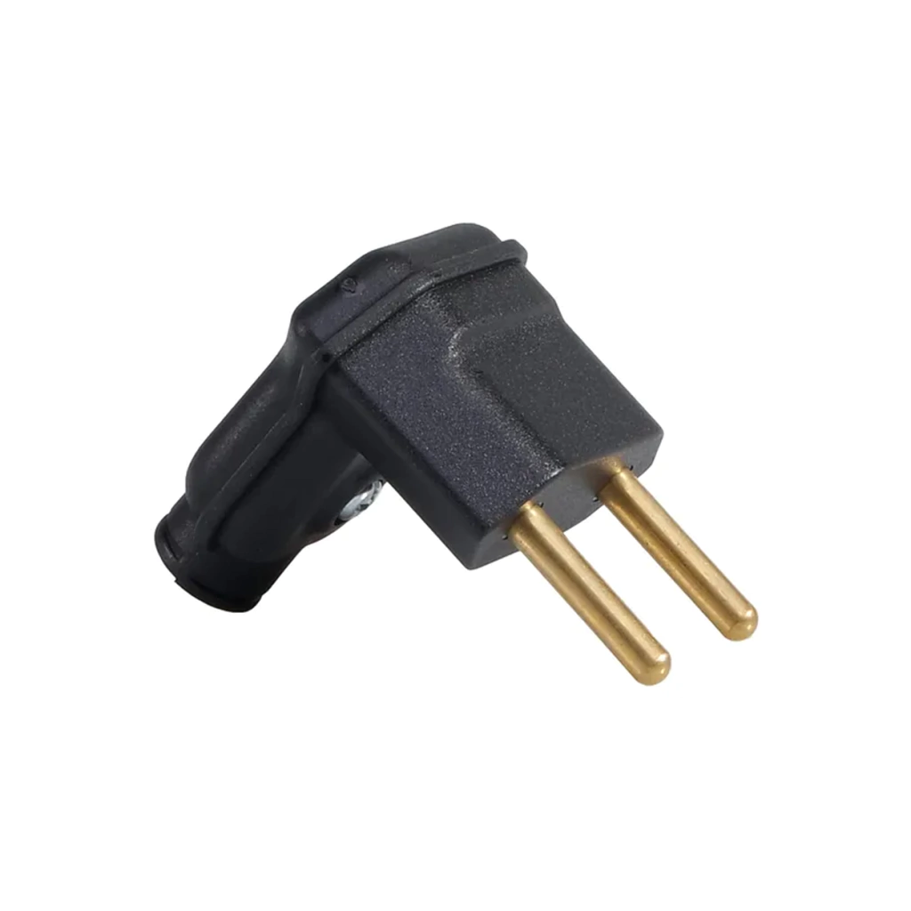 O Plug Margirius PLD6 é um conector macho de 2 pinos, desenvolvido para suportar até 10A em 250V~, garantindo praticidade e segurança em instalações elétricas. Fabricado em termoplástico de alta resistência, possui pinos e contatos em latão para melhor condução elétrica. Seu design em ângulo de 90° facilita a instalação em espaços reduzidos.